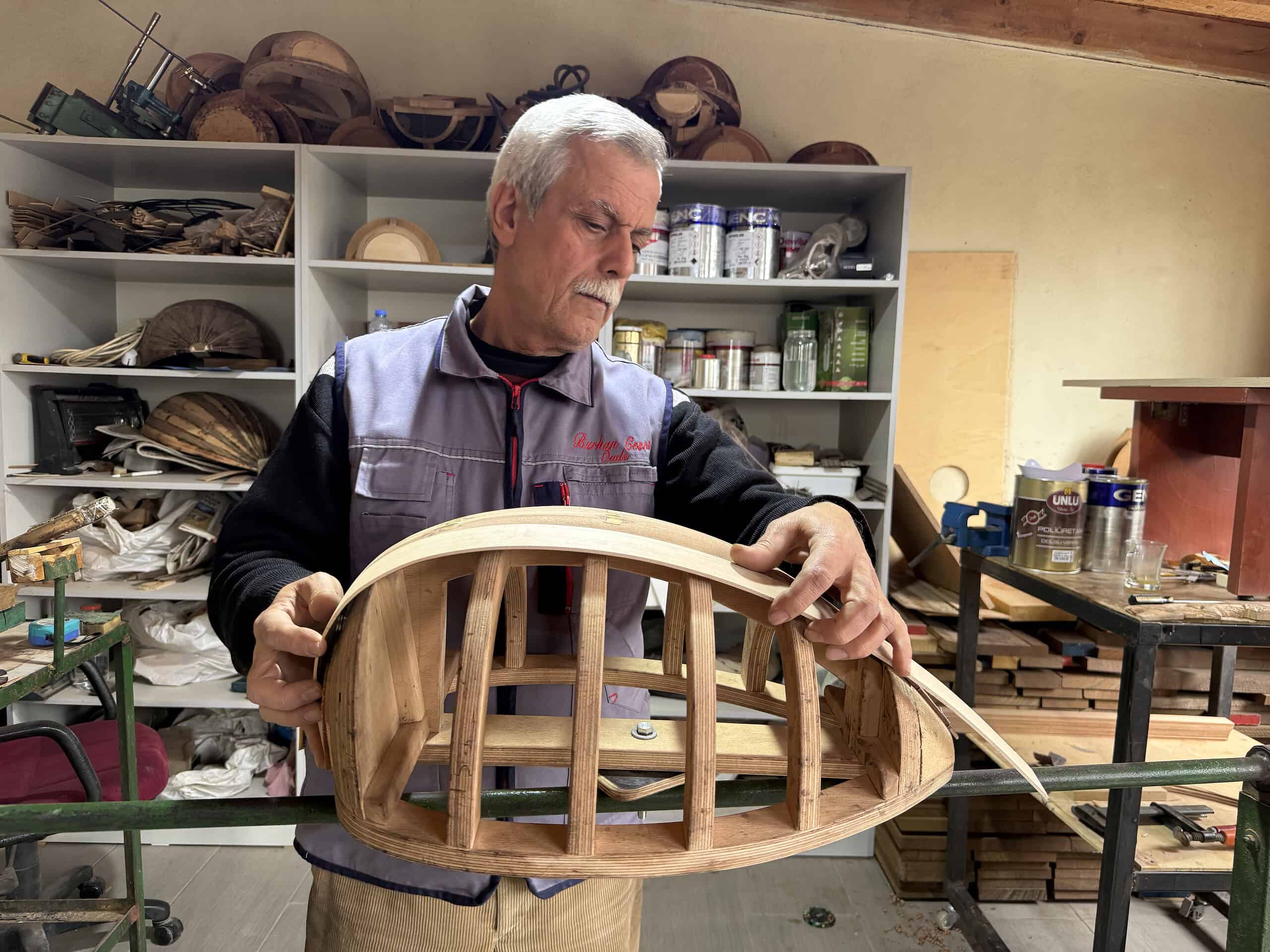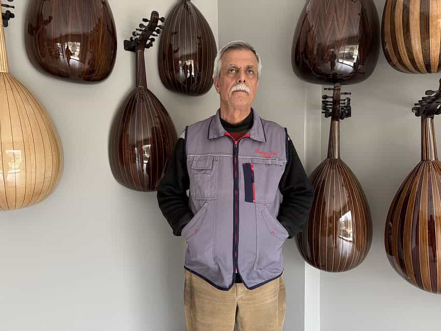 Kocaeli’de yaşayan 63 yaşındaki ud yapım ustası Burhan Çeşni, askerlik dönüşü tesadüfen başladığı meslekte 42 yılı geride bıraktı. Kuveyt’te geçirdiği 12 yılda Arap udları üzerine uzmanlaşan Çeşni, kişiye özel enstrümanlar üretiyor.