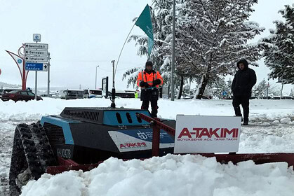 Kocaeli Büyükşehir Belediyesi ekipleri, karla mücadele çalışmaları kapsamında kaldırımları uzaktan kumandalı robotik…