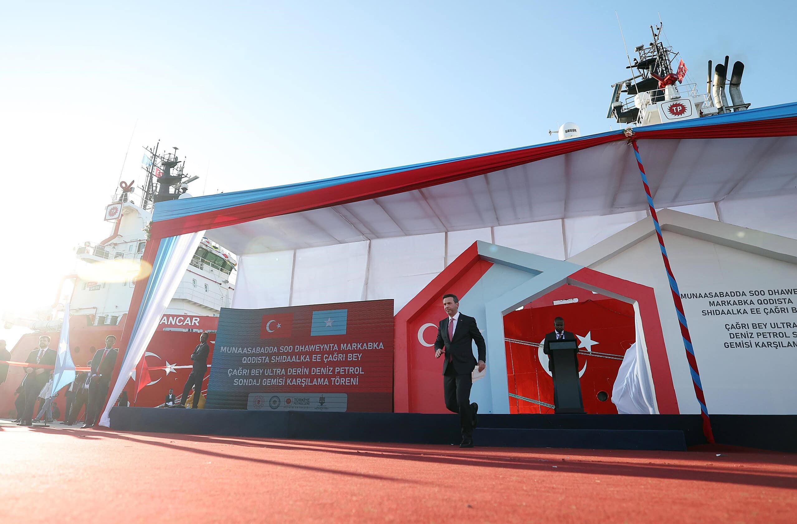 Çağrı Bey’i 15 Şubat’ta Mersin’den uğurladıklarını, geminin Akdeniz’i bir ucundan bir ucuna geçtiğini, sonra Afrika kıtasını baştan sona dolaştığını ve 53 günlük seyrüseferin ardından Mogadişu açıklarına demirlediğini anlatan Bakan Bayraktar, “Bugün attığımız bu tarihi adımla Türk petrol doğal gaz aramacılığında artık yeni bir dönem başlıyor. Çağrı Bey, Türkiye’nin yurt dışındaki ilk derin deniz sondajını burada Somali’de gerçekleştirecek” dedi.