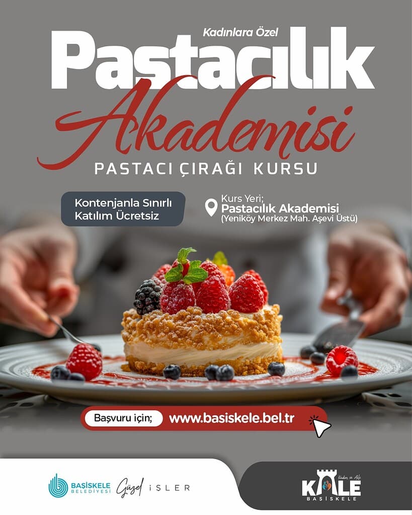 Başiskele Belediyesi, kadın istihdamını desteklemek ve mesleki becerileri geliştirmek amacıyla hayata geçirdiği Pastacılık Akademisi bünyesinde yeni bir eğitim dönemini başlatıyor. Yeniköy Merkez Mahallesi’nde hizmet veren akademi, “Pastacı Çırağı Kursu” ile kapılarını lezzet dolu bir kariyere adım atmak isteyen yetişkin kadınlara ücretsiz olarak açıyor.