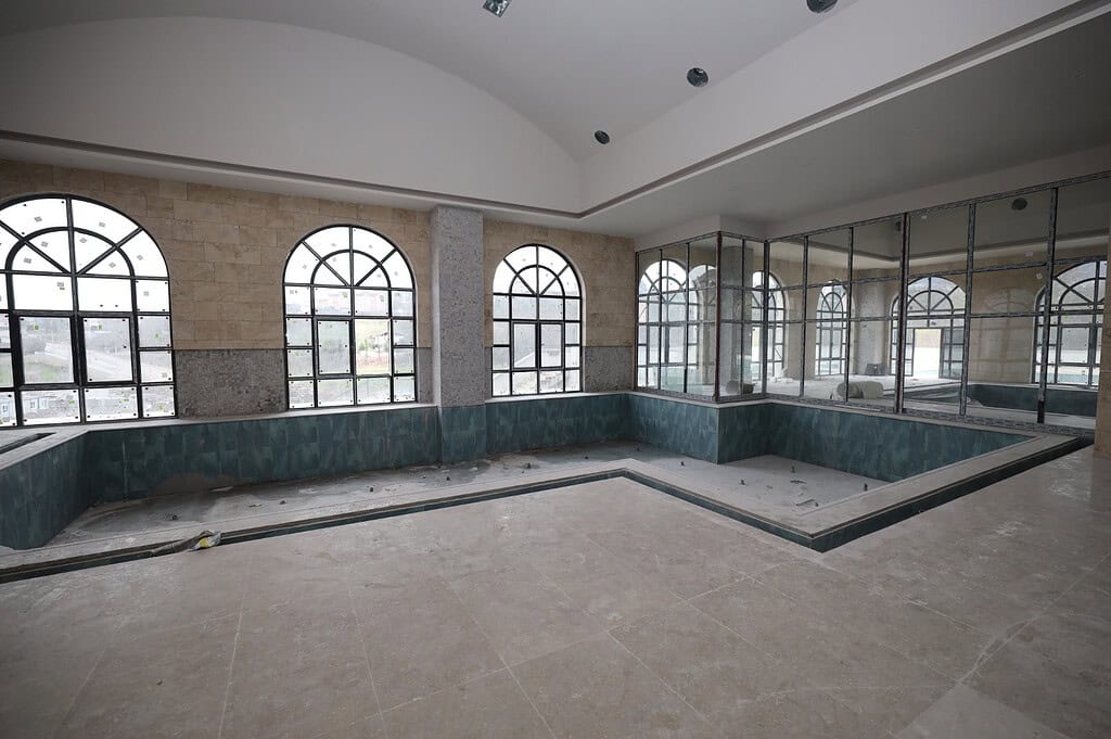 Başiskele’nin doğal güzelliklerini modern turizm imkanlarıyla birleştiren Yeniköy Termal Tesisi, 10 bin 621 metrekarelik dev bir alan üzerinde yükseliyor. İnşaat çalışmalarında mermer döşemelerden asma tavanlara, çevre düzenlemesinden mekanik sistemlere kadar her detayda sona gelindi. Tesis, estetik mimarisiyle sadece bir hamam kompleksinden öte, tam teşekküllü bir yaşam alanı sunuyor.