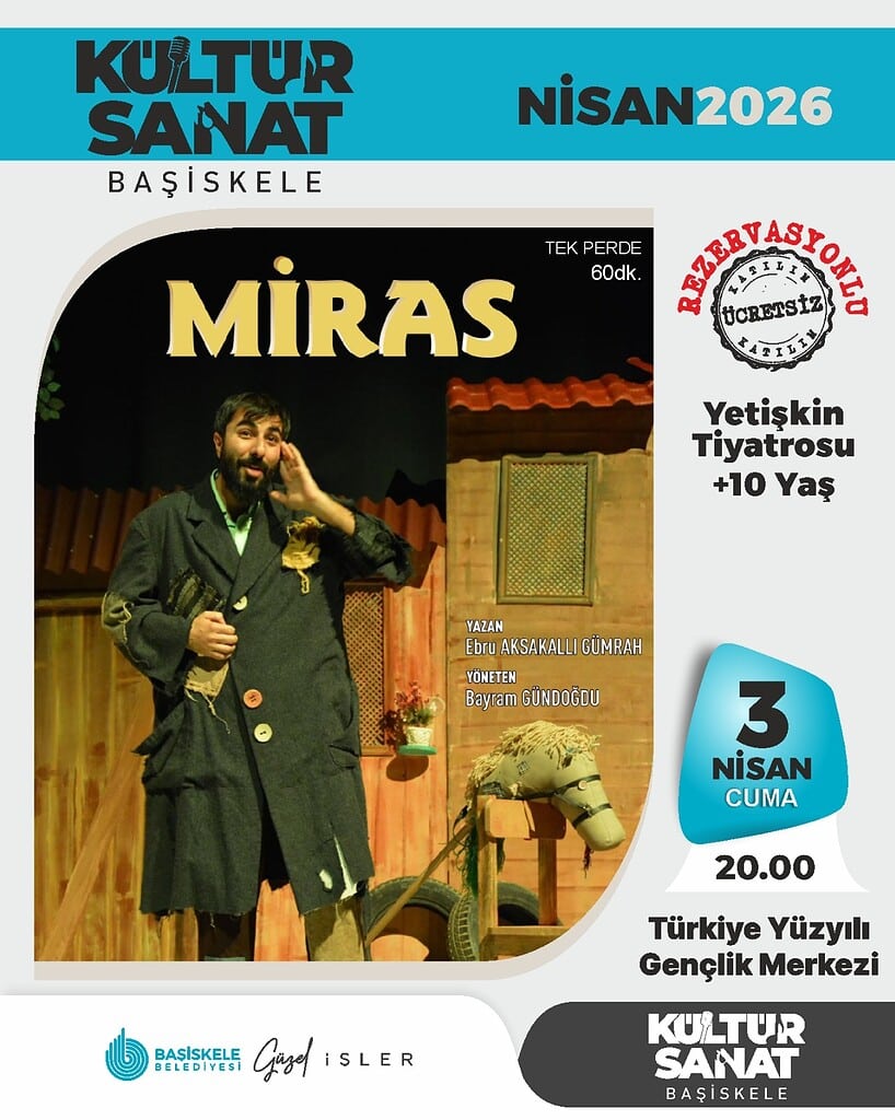 Başiskele Belediyesi, “Güzel İşler” mottosuyla sürdürdüğü kültürel faaliyetler kapsamında, izleyicileri derin bir muhasebeye davet eden “Miras” adlı tiyatro oyununu sahneye taşıyor. Başiskeleli sanatseverler için perde bir kez daha açılıyor! “Miras” adlı yetişkin oyunu, 3 Nisan Cuma akşamı Türkiye Yüzyılı Gençlik Merkezi’nde ücretsiz olarak izleyiciyle buluşacak.