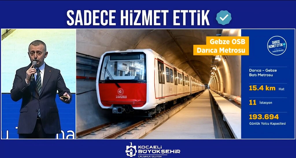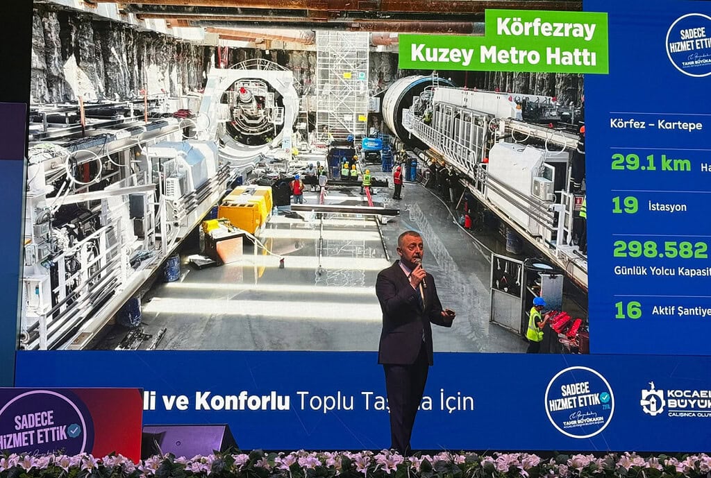 Kocaeli Büyükşehir Belediye Başkanı Tahir Büyükakın, Met-Gün İnşaat tarafından yürütülen 29 kilometrelik Körfezray Metro Projesi’nde 6 TBM cihazının aralıksız çalıştığını ve İzmit-Kartepe hattında önemli mesafe katedildiğini duyurdu. Kocaeli Kongre Merkezi’ndeki “Sadece Hizmet Ettik” hizmet ve eser sunumunda konuşan Büyükakın, Gebze Metrosu’nun 2026’da hizmete gireceğini belirterek, “Bakanlığın yapması işi hızlandırıyor ancak parasını belediye bütçemizden kesintiyle biz ödüyoruz” dedi.