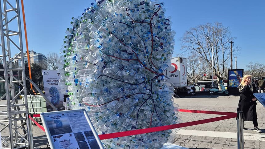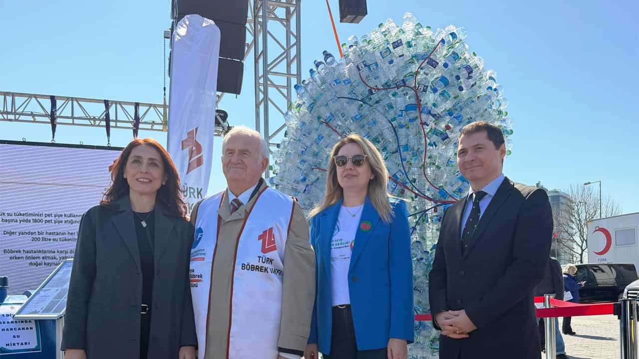 Dünya Böbrek Günü kapsamında, Türk Böbrek Vakfı tarafından 1800 pet şişe kullanılarak hazırlanan 2,5 metre yüksekliğinde dev böbrek maketi, vatandaşların yoğun ilgisiyle karşılandı. Türk Böbrek Vakfı Başkanı Timur Erk, Türkiye’de yaklaşık 72 bin son dönem kronik böbrek yetmezliği hastası bulunduğunu belirterek, suyun hayati önemine dikkat çekti. Erk, “Bir hastanın 4 saatlik tek bir hemodiyaliz seansında en az 200 litre şebeke suyu kullanılıyor. Türkiye genelinde yılda yaklaşık 2,5 milyon ton su, bu tedavi sürecinde atığa dönüşüyor” dedi.