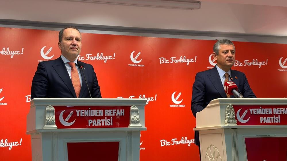 CHP Genel Başkanı Özgür Özel, parti ziyaretleri kapsamında Yeniden Refah Partisi Genel Başkanı Fatih Erbakan’ı ziyaret etti. Yeniden Refah Partisi Genel Merkezi’nde baş başa görüşen ikili, görüşmenin ardından ortak basın açıklaması düzenledi.