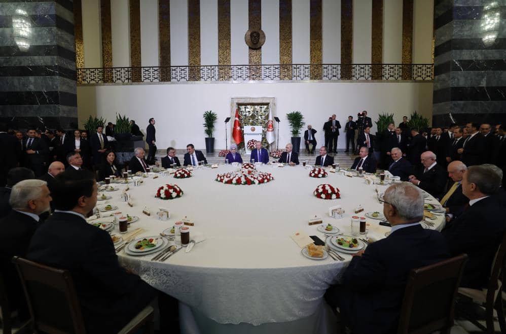 Cumhurbaşkanı Recep Tayyip Erdoğan, “Belirsizliğin, gerilimin, çatışmanın ve hukuksuzluğun norm haline geldiği böyle hassas bir konjonktürde Türkiye’nin tavrı bellidir. Biz bölgemizi ve insanlığı ilgilendiren meselelerde asla tarafsız değiliz. Biz tüm dünyanın geleceğini tehdit eden konularda tarafsız değiliz. Tam tersine Türkiye olarak sulhu sükunun tarafındayız” dedi.
