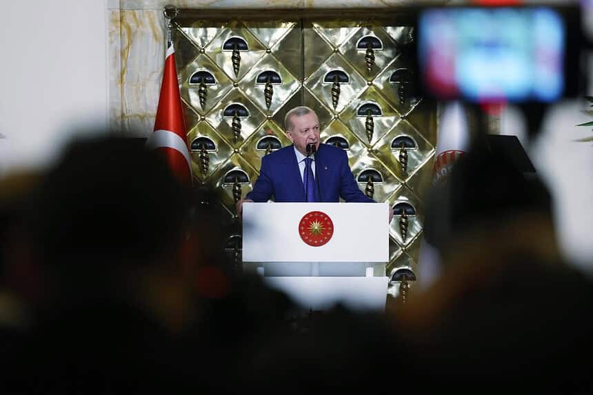 Yaşanan kaoslarda Türkiye’nin tarafının net olduğunun altını çizen Erdoğan, “Belirsizliğin, gerilimin, çatışmanın ve hukuksuzluğun norm haline geldiği böyle hassas bir konjonktürde Türkiye’nin tavrı bellidir. Biz bölgemizi ve insanlığı ilgilendiren meselelerde asla tarafsız değiliz. Biz kardeşlerimiz ve komşularımızın huzurunu bozan hadiselerde tarafsız değiliz. Biz tüm dünyanın geleceğini tehdit eden konularda tarafsız değiliz. Tam tersine Türkiye olarak sulhü sükunun tarafındayız. Huzurun ve istikrarın tarafındayız. Dayanışmanın ve iş birliğinin tarafındayız. Evrensel değerlerin, adaletin ve kalkınmanın tarafındayız. Sorunların diyalog ve diplomasiyle çözülmesinin tarafındayız. Çatışma yerine müzakerenin, savaş yerine barışın tarafındayız. Öldürmenin, katletmenin, haydutluğun, soykırımın ve soykırımcıların değil hakkın, hakikatin, nerede olursa olsun insanı yaşatmanın tarafındayız. Mazlumların gözyaşını dindirmenin, zulmü engellemenin tarafındayız. İnşallah bu çizgimizi, bu duruşumuzu her daim koruyacağız. Nasıl bugünlere oyunları bozarak geldiysek, nasıl bize demokrasi ve insan hakları dersi verenler susarken zulmün olduğu her yerde cesaretle hakkı haykırdıysak, nasıl zalimlere hiçbir zaman boyun eğmediysek, Allah’ın izni, aziz milletimizin güçlü desteğiyle adaletsizlikler karşısında dik durmaya devam edeceğiz. Basiretli düşünmeye, soğukkanlı olmaya, sağduyulu davranmaya devam edeceğiz. Bilhassa yakın çevremizde füzeler havada uçuşurken 86 milyonun tek bir ferdinin dahi kılına zarar gelmemesi için dikkatli, temkinli, sabırlı fakat haksızlıklar ve haydutluklar karşısında da bir o kadar dirayetli olmaya devam edeceğiz” açıklamasında bulundu.