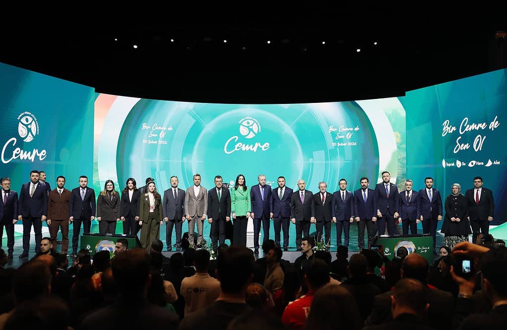 Çevre, Şehircilik ve İklim Değişikliği Bakanlığı’nın kapılarının herkese açık olduğunu söyleyen Cumhurbaşkanı Erdoğan, “Aynı şekilde bizim kapımız; ülkesine, milletine ve şehrine hizmet etmek isteyenlere sonuna kadar açıktır. Çevreyi korumanın partisi olmaz. Afetlere karşı hazırlığın ideolojisi olmaz. Biz iş yapana, hizmet üretene, insanımıza faydası olana her zaman sahip çıkarız, destek veririz, önünü açarız. Çevre konusunda küresel düzeyde oluşturulan örgütlerin içinde yer alma, anlaşmalara taraf olma konusunda gelişmiş ülkelerin özellikle önündeyiz. Paris İklim Anlaşması’nı 2021 yılında Meclisimizde biz onayladık. Ardından yeşil büyüme vizyonu ve net sıfır emisyon hedefi doğrultusunda iklim değişikliğiyle mücadeleyi amaçlayan İklim Kanunu’nu kabul ettik. Nihai hedefimiz olan 2053 yılında net sıfır emisyona ulaşmak için gerekli tüm adımları atmayı sürdürüyoruz. Eşim Emine Erdoğan’ın himayesinde yürütülen Sıfır Atık Projesi, bugün gelinen noktada küresel bir çevre hareketine dönüştü. Çevre projelerimizin çatısını sıfır atık anlayışı oluşturuyor. Bu hareket bize şunu öğretiyor. Bir pet şişeyi geri dönüştürdüğümüzde sadece bir atığı bertaraf etmiyoruz; aynı zamanda bir canlının hayatını, bir sahilin güzelliğini, bir çocuğun umudunu da kurtarıyoruz. Bir ağacı kurtardığımızda yalnızca bir fidan yeşertmiyoruz; daha önemlisi, bir neslin nefesini de güvence altına alıyoruz. Şimdi tüm bu projeleri ve hizmetleri bir üst aşamaya taşımaya hazırlanıyoruz. Biliyorsunuz, oldukça çetin geçen diplomatik müzakereler neticesinde COP 31’in ev sahipliğini üstlendik. Bu sene Antalya’da 200’e yakın ülkeyi ağırlayacak. İnşallah artık ‘söz değil eylem zamanı’ diyeceğiz. Lafa gelince çevreci kesilen ama Milas’ta zeytin ağacı kıyımı yapanların, yönettikleri şehirleri çöpe, çamura ve çukura mahkum edenlerin kışın ortasında milletimize haftalarca susuzluk çektiren istismarcıların, kimi zaman beceriksizlikleri, kimi zaman aşırı rant hırsları sebebiyle cennet vatanımızı yaşanmaz hale getirmelerine fırsat vermeyeceğiz” şeklinde konuştu.