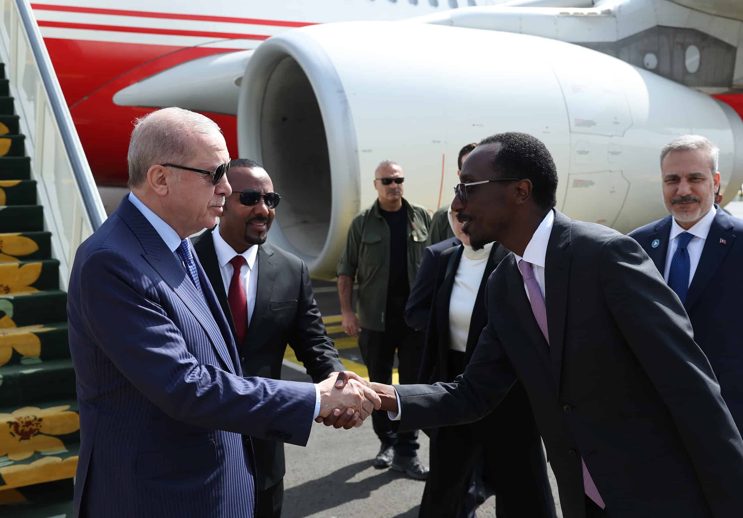 Cumhurbaşkanı Recep Tayyip Erdoğan, Etiyopya’ya geldi. Başkent Addis Ababa Bole Uluslararası Havalimanı’na inen Cumhurbaşkanı Erdoğan’ı Etiyopya Başbakanı Abiy Ahmed, Etiyopya Dışişleri Bakanı Gedion Timothewos ve Türkiye’nin Addis Ababa Büyükelçisi Berk Baran karşıladı.