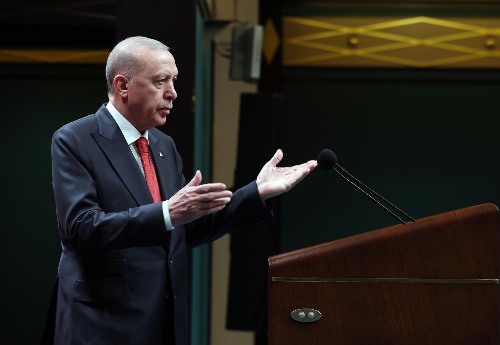 Küresel sistemin 2008 krizinden bu yana sancılı ve sarsıntılı olduğu kadar köklü bir değişim ve dönüşüm geçirdiğini dile getiren Erdoğan, “Söz konusu değişim dört ana eksende aktörler arasındaki rekabeti ciddi manada kızıştırmaktadır. Uluslararası sistem temelde şu soruların cevabını aramaktadır. Teknolojiye kim yön verecek? Veriyi ve yapay zekayı kim yönetecek? Üretim, tedarik ve tüketim zincirlerini kim domine edecek? Enerji kaynaklarını ve ticaret yollarını kim kontrol edecek? Çok kutupluluğa doğru evrilen dünya düzeninde yeni kutup başları kimler ve hangi ülkeler olacak? Can yakıcı sonuçlarıyla bir süredir yüzleştiğimiz meselelerin özü ve özeti bu sorulara verilecek cevaplarda mahfuzdur. Tıpkı bir asır önce olduğu gibi yeni dünya düzeninin mücadele sahası olarak bir kere daha bölgemiz belirlenmiştir. Klasik ittifaklar çözülürken benzer tehdit ve tehlikelerle karşı karşıya olan ülkeler arasında yeni ittifaklar kurulmaktadır. Yine bu süreçte bölgesel iş birliğinin daha önce hiç olmadığı kadar öne çıktığını görmekteyiz. Dünyanın bu yeni çatışma ve savaş konjonktürüne Türkiye olarak, iktidar olarak hamdolsun çok iyi hazırlandık” dedi.