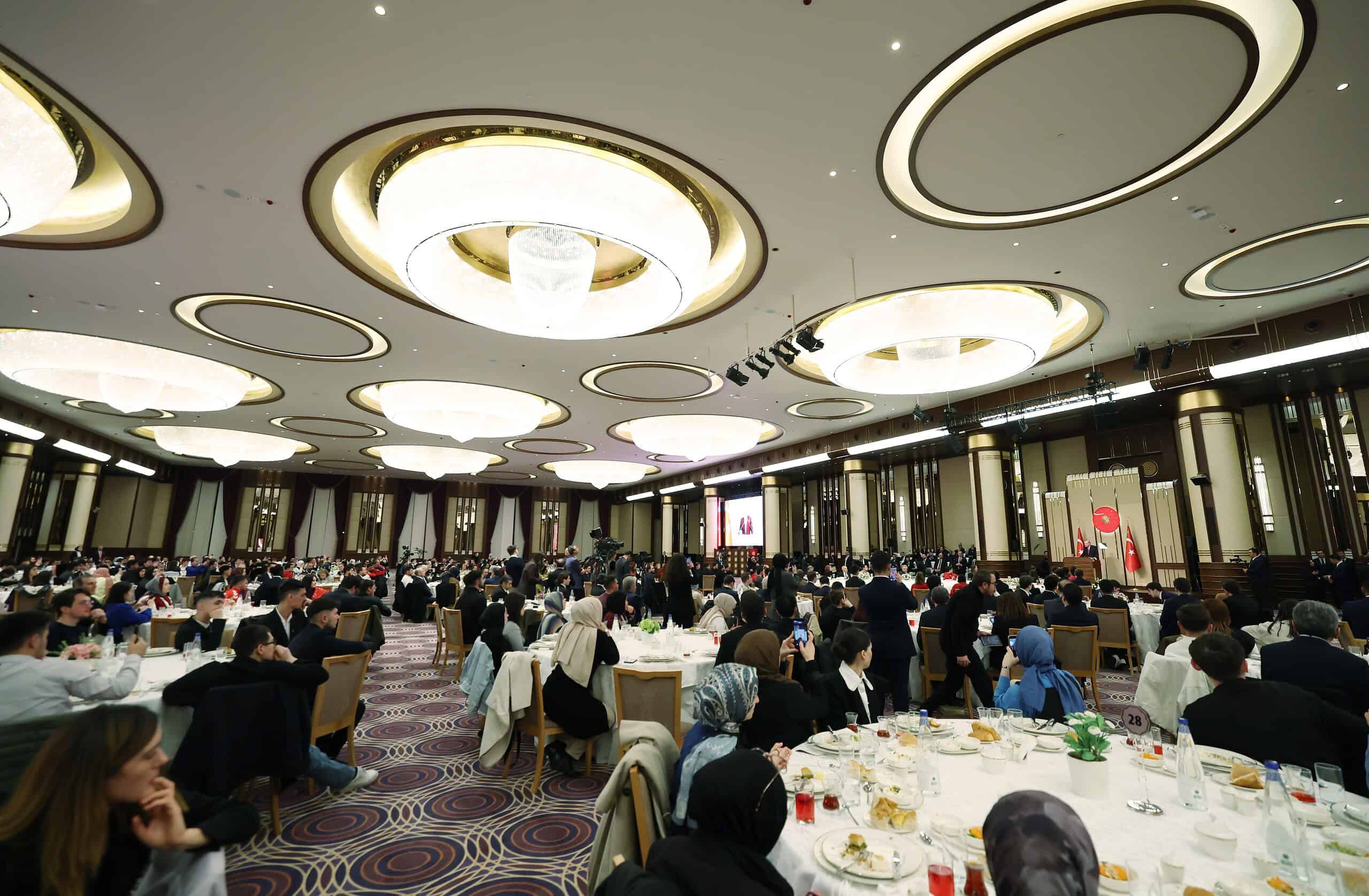 Cumhurbaşkanı Recep Tayyip Erdoğan, KYK öğrencileri, sporcular ve gençlerle iftar programında bir araya geldi. Cumhurbaşkanlığı Külliyesi’nde gerçekleşen iftar programında konuşan Erdoğan, siyasi kariyeri boyunca her zaman gençlerle çalıştığını ve bundan da gurur duyduğunu söyledi. Gençlere Türkiye’ye sahip çıkmalarını da öğütleyen Erdoğan, Türkiye’nin onların omuzunda yükseleceğini söyledi.