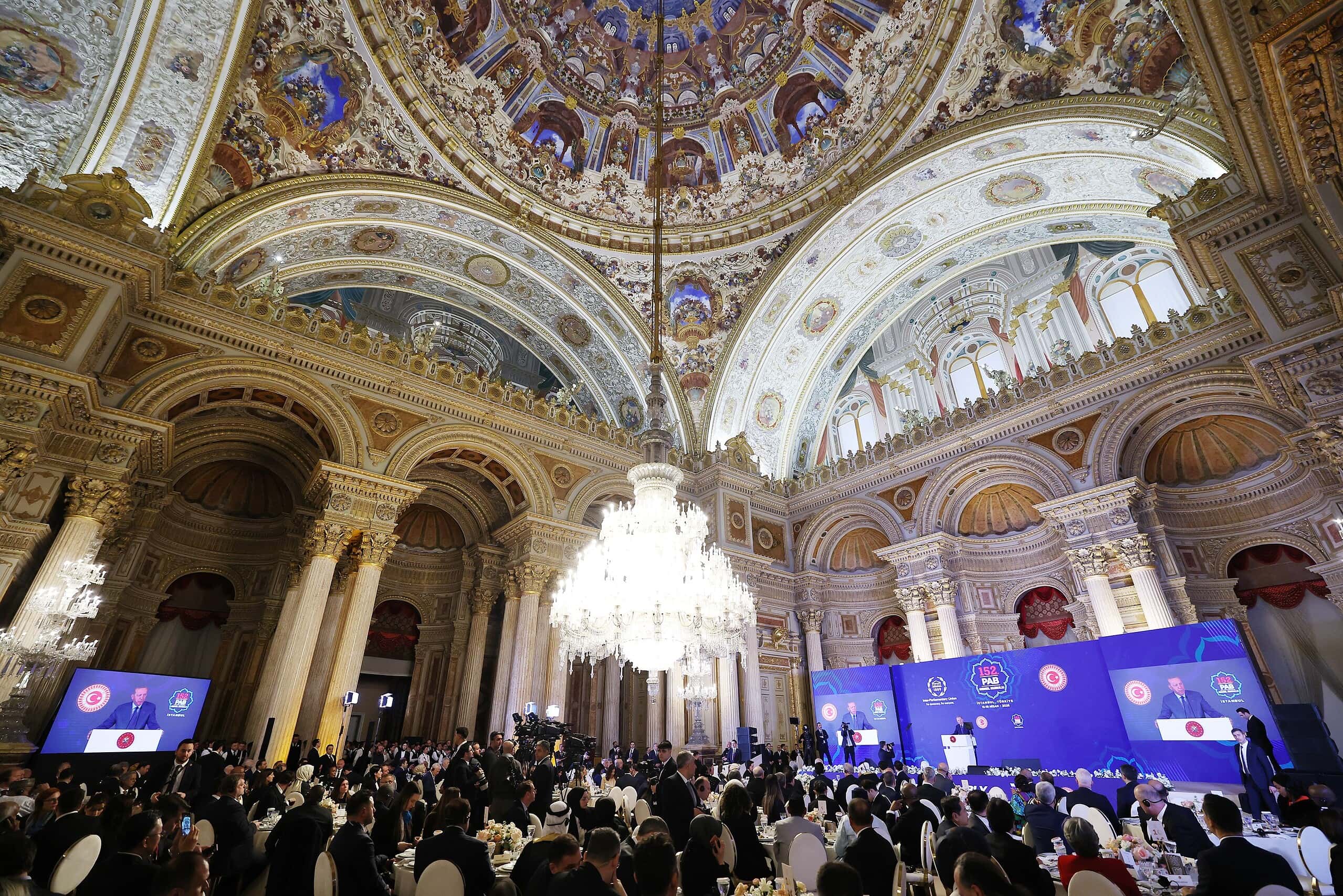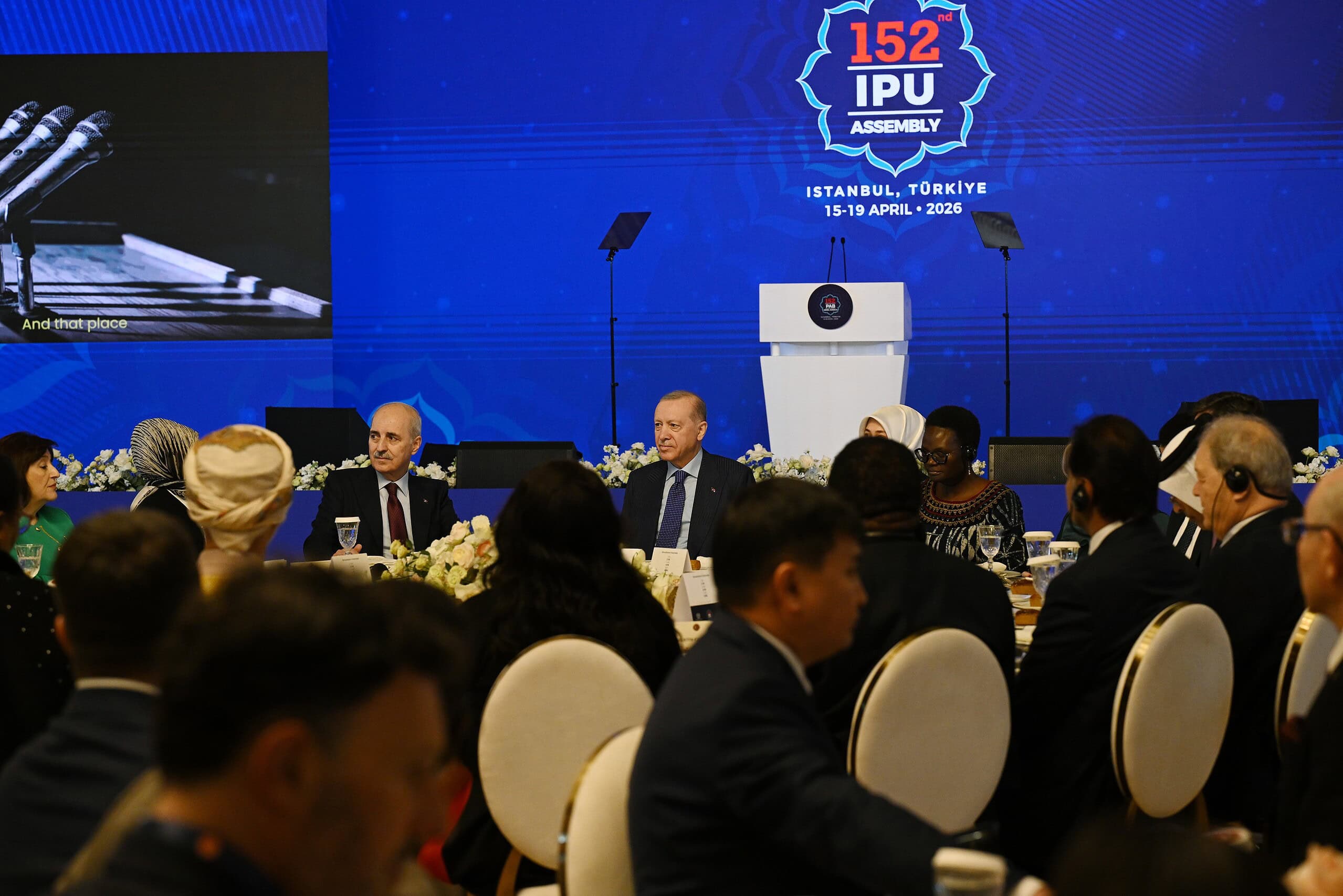Cumhurbaşkanı Recep Tayyip Erdoğan, Dolmabahçe Sarayı’nda 152. Parlamentolar Arası Birlik (PAB) Genel Kurulu onuruna verilecek akşam yemeğinde açıklamalarda bulundu. Cumhurbaşkanı Erdoğan, “Türkiye ve İstanbul olarak parlamentolar arası birliğin genel kuruluna 4. kez ev sahipliği yapmaktan duyduğumuz memnuniyeti sözlerimin hemen başında ifade etmek istiyorum. Gelecek nesiller için umudu yeşertmek, barışı sağlamak ve adaleti temin etmek temasıyla toplanan 152. Genel Kurulun tüm insanlık için hayırlara vesile olmasını diliyorum. Genel Kurul kapsamında alınacak kararların, yapılacak tartışmaların, buradaki tespit, tenkit ve tekliflerin, aynı şekilde icra edilecek komite toplantıları, forum oturumları ve yan etkinliklerin aramızdaki dostluk ve dayanışmayı daha da güçlendirmesini, Gazze’deki mezalim başta olmak üzere mevcut sorunların çözümüne katkı vermesini temenni ediyorum. 2026’nın ilk genel kuruluna başarıyla ev sahipliği yapan Türkiye Büyük Millet Meclisimizi, Sayın Meclis Başkanımızı ve milletvekillerimizi ayrıca tebrik ediyorum. Son olarak Genel Sekreterlik görevini 12 yıldır başarıyla yürüten Sayın Martin Chungong’a Birliğe yaptığı katkılar için teşekkür ediyor, bu önemli vazifeyi devralacak arkadaşımıza muvaffakiyetler diliyorum. Parlamentolar Arası Birlik Toplantısı tam 137 yıldır çok önemli bir işlevi yerine getiriyor. ‘Herkes İçin Demokrasi’ anlayışıyla parlamenter demokrasiye açılan Birliğin siz kıymetli mensuplarına bu akşam bir kez daha teşekkür ediyorum” dedi.