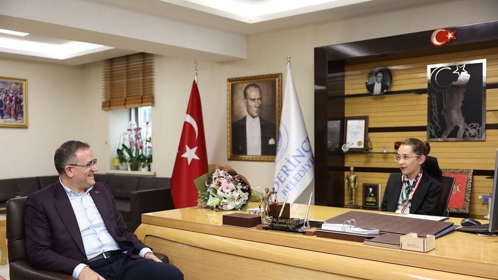Cumhuriyetimizin Kurucusu Gazi Mustafa Kemal Atatürk’ün çocuklarımıza armağan ettiği 23 Nisan Ulusal Egemenlik ve Çocuk Bayramı, yurt genelinde olduğu gibi Kocaeli’de de çeşitli etkinliklerle kutlanıyor. Derince’de düzenlenen programlar kapsamında Başkan Gökçe, Yunus Emre İlkokulu 4/A Sınıfı öğrencisi Nisa Yağmur Can’ı başkanlık makamında misafir etti. Ziyarette Yunus Emre İlkokulu Müdürü Cantürk Şanal, sınıf öğretmeni Öznur Katılmış ve öğrencinin annesi Nuray Adıgüzel de hazır bulundu.