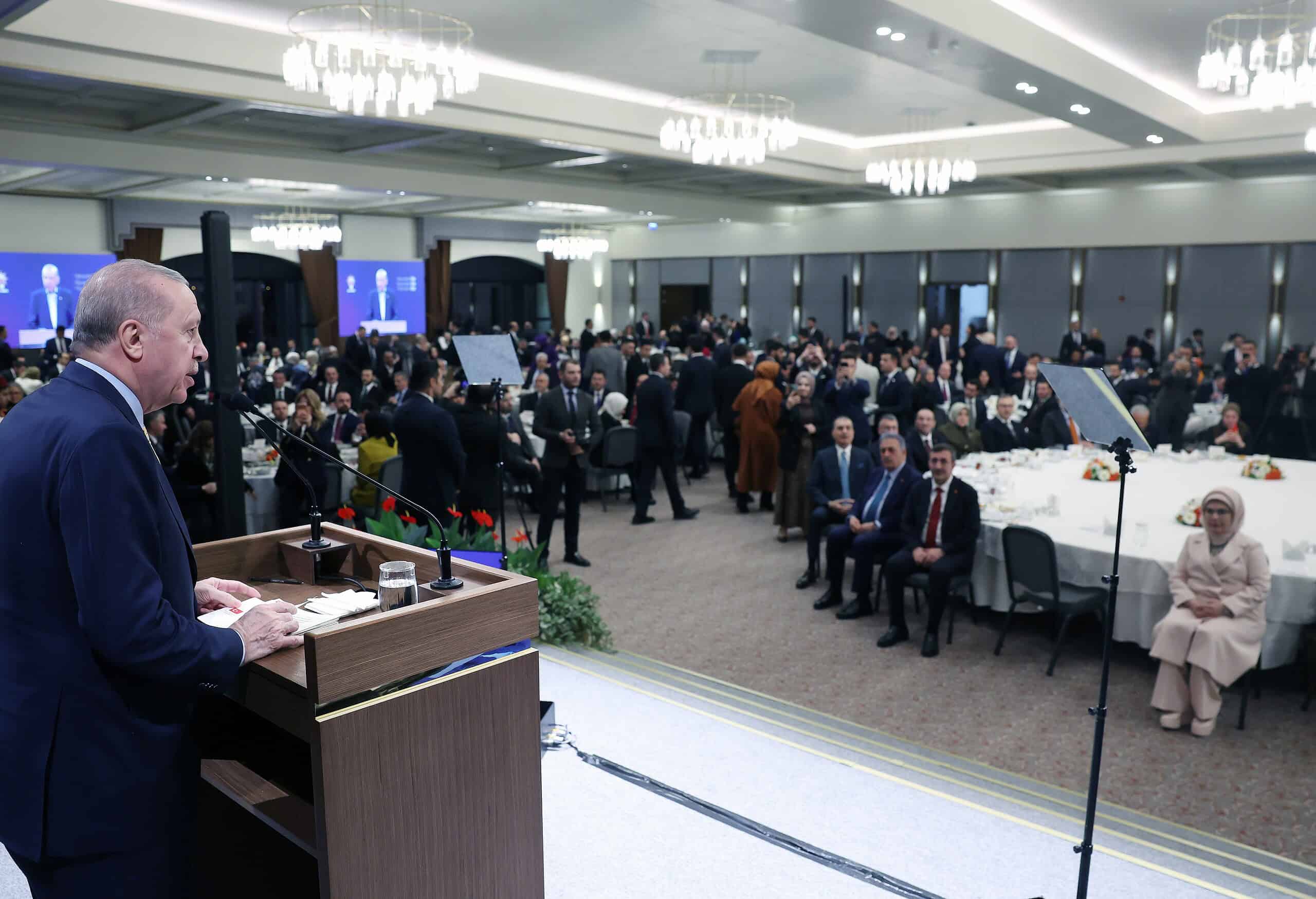 Cumhurbaşkanı Erdoğan, AK Parti Genel Merkez binasında gerçekleştirilen AK Parti Genel Merkez 2026 İftar Buluşması’na katıldı. Burada konuşan Erdoğan, AK Parti olarak manevi duyguların doruk noktasına çıktığı, sevginin, muhabbetin, yardımlaşmanın, dayanışmanın daha bir anlam kazandığı Ramazan ayını en güzel şekilde idrak etmenin çabasında olduklarını ifade ederek, genel merkez birimleri, milletvekilleri, kadın kolları, gençlik kolları, ve yerel yönetimlerle tam kadro sahada olduklarını aktardı. Erdoğan, Ramazan ayında yurt içinde olduğu gibi Halep’ten Saraybosna’ya, Varna’dan Prizren’e kadar yurtdışındaki birçok yerde Ramazan coşkusunu birlikte paylaştıklarını da sözlerine ekledi.