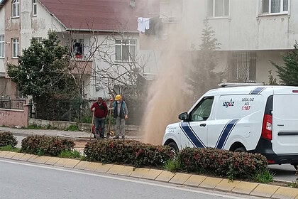 Kocaeli'nin Derince ilçesinde yürütülen altyapı çalışmaları sırasında doğalgaz ana hattının hasar görmesi…