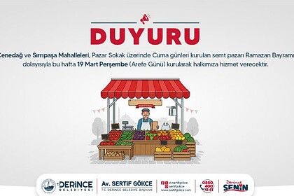 Derinceliler Dikkat! Merkez Semt Pazarı Arefe Günü (19 Mart) Hizmet Verecek