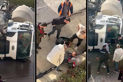 Devrilen Beton Mikserinin İçinde Mahsur Kaldı, Balyozla Kendini Kurtardı