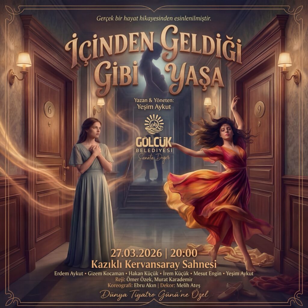 Gölcük Belediyesi Tiyatro Ekibi, 27 Mart Dünya Tiyatro Günü’nü anlamlı bir gala ile kutlamaya hazırlanıyor. Sanatın birleştirici gücüyle şekillenen bu özel akşamda, gerçek bir hayat hikayesi seyirciyle buluşacak. Belediye Başkanı Ali Yıldırım Sezer’in destekleriyle hazırlanan ve Yeşim Aykut’un kaleminden çıkan ‘İçinden Geldiği Gibi Yaşa’ adlı tiyatro oyunu, Kazıklı Kervansaray Sahnesi’nin tarihi atmosferinde perde açacak.