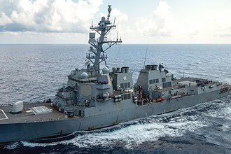 Doğu Akdeniz'de görev yapan ABD Donanması'na ait USS Oscar Austin savaş gemisi,…