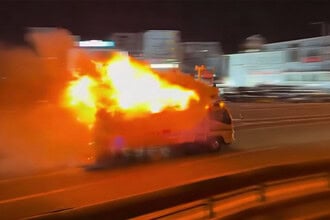 Aksiyon filmlerini aratmayan anlar! Alev topuna dönen aracıyla 2 kilometre yol yaptı