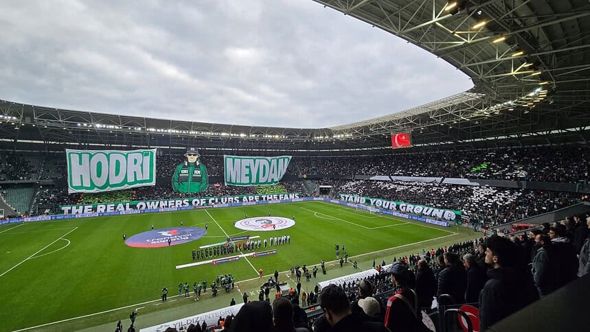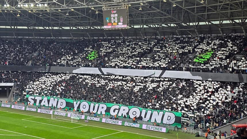 Kocaelispor-Beşiktaş maçında 22 bin taraftar tribünleri doldurdu. Maraton tribününde sergilenen “The real owners of clubs are the fans” koreografisi güne damga vurdu.
