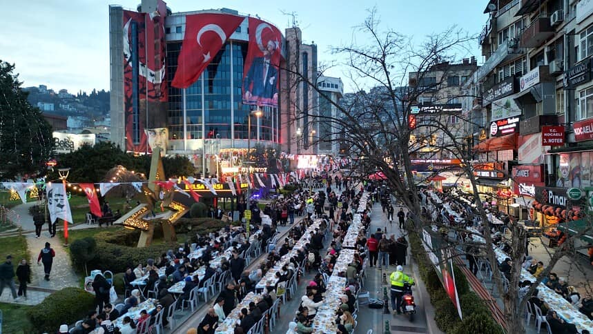 İzmit Belediyesi, Ramazan ayının manevi iklimini dev bir dayanışma sofrasıyla taçlandırarak belediye meydanında binlerce vatandaşı bir araya getirdi. “Büyük bir aile” vurgusunun yapıldığı geleneksel halk iftarında, İzmit Belediye Başkanı Fatma Kaplan Hürriyet vatandaşlarla tek tek selamlaşarak Ramazan bereketini paylaştı.