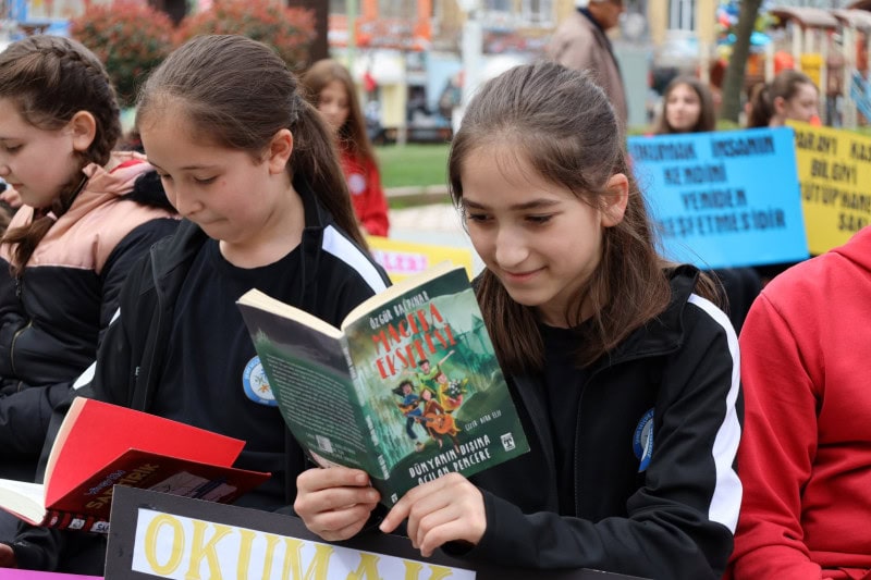 Etkinlik, Kütüphanem Kocaeli’nin yeni maskotu “Koca Bilge” eşliğinde gerçekleştirilen kortej ile başladı. Çocuklar, kitap okumanın önemini anlatan pankartlar taşıyarak keyifli anlar yaşadı. Mini kortejin ardından çocuklar, Cumhuriyet Bulvarı’nı süsleyen dev ağaçların etrafında toplanarak kitap okudu. Doğayla iç içe gerçekleşen bu anlar, etkinliğin en sakin ve anlamlı bölümlerinden biri oldu.