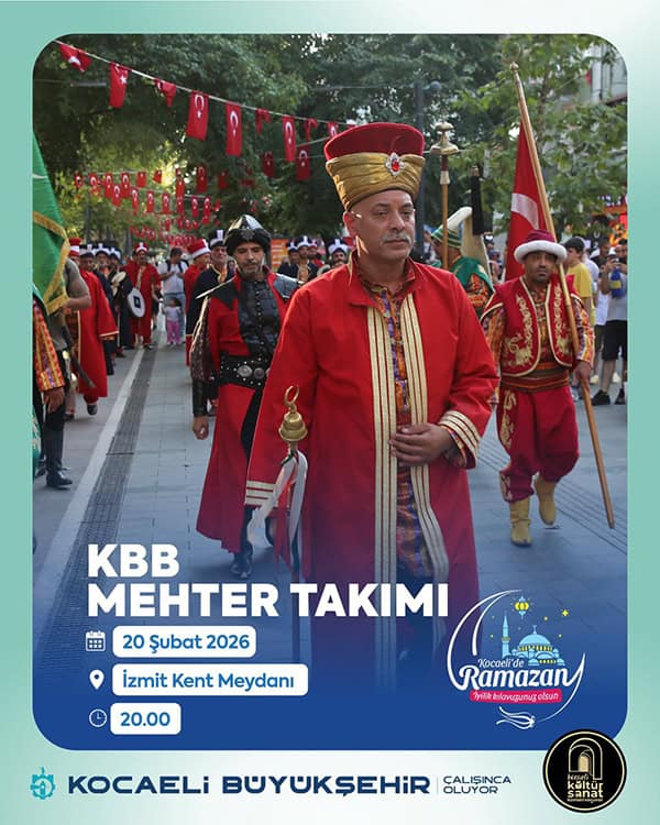 - Saat 20.00’de: Kocaeli Büyükşehir Belediyesi (KBB) Mehter Takımı, heybetli marşlarıyla meydandaki vatandaşlara tarihi bir atmosfer yaşatacak.