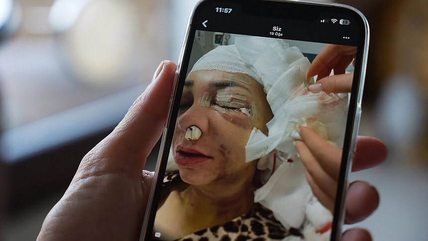 15 gün hastane süreci olan kadın, yaşadığı zorluğu, tehditleri ve travmalarını anlattı. Geçirdiği ameliyatla saçları kazınan Meryem Yıldırım, duygu dolu anlar yaşarken, mama ile beslendiğini, gözünde görme kaybı olduğunu, asla eskisi gibi olamayacağını söyledi.Olay, Ramazan Bayramı’nın birinci günü İzmit’teki bir kafede meydana geldi. Meryem Yıldırım (39) ve oğlu Talha Kaan İzal (21), vakit geçirmek için eğlence mekanına gitti. Mekanda, gözü dönmüş grubun saldırısına uğrayan anne ve oğlu darp edildi. Yüzüne ve vücuduna aldığı tekmelerle ağır yaralanan anne Meryem Yıldırım, kanlar içinde kaldı. Oğlu tarafından çağrılan ambulansla hastaneye kaldırılan kadının yüzünde çok sayıda kırık, oğlunun ise kaburgasında çatlak tespit edildi. Kadın, 15 günlük tedavisinin ardından taburcu oldu.Olay sebebiyle Kürşat G. tutuklanırken, diğer 2 şüpheli ise serbest bırakıldı.