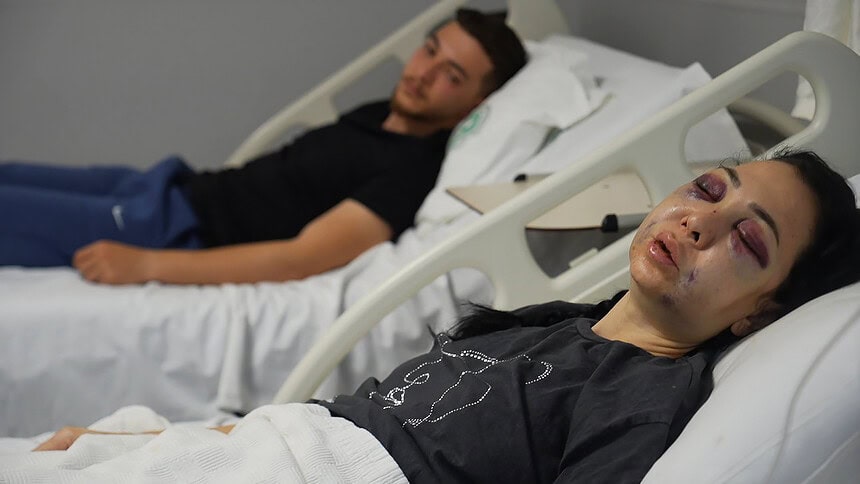 Yüz ve kafatasındaki kırıklardan kaynaklı ameliyata alınan ve bu sebeple kafasında 30 zımba bulunan Meryem Yıldırım, yaşadığı zor süreci anlattı.Hastane sürecinden sonra evine gelen Meryem Yıldırım, “Bayramın birinci günü oğlumla dışarıda yemekteydik. Sonra eğlenmek için gittiğimiz mekanda tanımadığımız kişiler tarafından darp edildik. Orada başka bir kavga vardı. Bizi darp eden şahıslar önce mekandaki garsonu tartakladılar. Garson içeri kaçınca bunlar da içeri girdi. İçeri girdiklerinde de küfür ediyorlardı. Oğlum da ‘Beyler küfür etmesek mi’? dedi. Bunun üzerine oğluma yumruk attılar. Tekmeyle yumrukla saldırmaya başladılar. Mekan sahibi herkesi dışarı çıkarttı. Sadece bölüm bölüm dayak yediğimi hatırlıyorum. Yani durup durup vurmuşlar. Ben kaçtıkça gelip vurmuşlar. Sürekli kafama darbe aldım. Kurtulmak için başka bir mekana girdim. Bunlar mekan sahibi değil. Saldıranlar 3 kişiydiler, biri kadın, 2’si erkekti” diye konuştu.