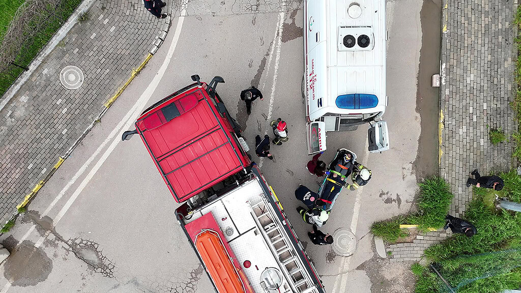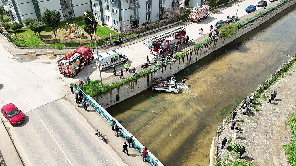 Öte yandan, kamyonetin demir korkulukları parçalayarak dereye uçtuğu anlar çevredeki bir sitenin güvenlik kamerası tarafından saniye saniye kaydedildi. Ekiplerin çalışması ve olay yeri, dron ile havadan da görüntülendi. Polis ekipleri kazayla ilgili inceleme başlattı.