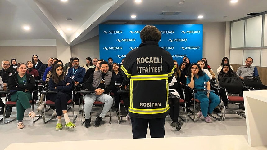Özel Medar Gölcük Hastanesi’nde gerçekleştirilen eğitim programına 56 personel katıldı. Eğitimlerin ardından yapılan yangın tatbikatı ile katılımcıların olası acil durumlara karşı hazırlığı pekiştirildi. Aynı kapsamda Gölcük Necati Çelik Devlet Hastanesi personeline yönelik düzenlenen eğitimde ise 69 çalışana yangın önleme ve söndürme teknikleri anlatıldı. Program sonrasında gerçekleştirilen tatbikat ile personelin yangına müdahale becerileri, uygulamalı olarak geliştirildi.