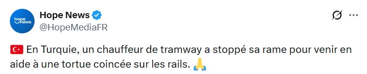 İyilik haberlerine odaklanan küresel içerik platformu Hope News, Kocaeli’den gelen bu görüntüleri “En Turquie, un chauffeur de tramway a stoppé sa rame pour venir en aide à une tortue coincée sur les rails.” notuyla paylaştı. Görüntülerin uluslararası boyutta etkileşim alması, Kocaeli’nin modern bir şehir olmasının yanı sıra canlı haklarına duyarlı bir toplum yapısına sahip olduğunu da tüm dünyaya duyurdu.