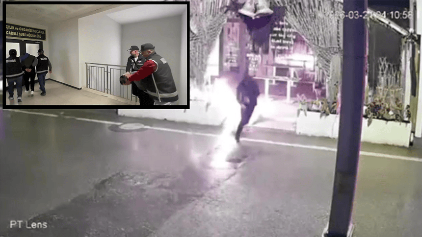Şüpheliler, emniyetteki işlemlerinin ardından adli mercilere sevk edilecek. Kundaklama olayı bir iş yerinin güvenlik kamerasına yansıdı.