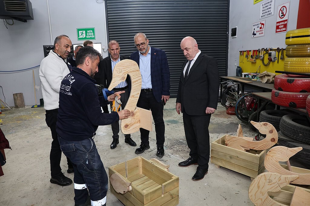 Darıca Belediye Başkanı Muzaffer Bıyık, kent mobilyalarının üretildiği atölyeyi ziyaret ederek çalışmaları yerinde inceledi. Belediyenin kendi imkanlarıyla üretim yapmasının hizmet hızını artırdığını ifade eden Başkan Muzaffer Bıyık, “İlçemizin farklı noktalarında kullanılan kent mobilyalarını kendi atölyemizde üretmenin mutluluğunu yaşıyoruz. Bu sayede hem hızlı hareket ediyor hem de belediyemizin kaynaklarını daha verimli kullanıyoruz. Aynı zamanda bakım ve onarım çalışmalarını da kendi ekiplerimizle kısa sürede gerçekleştirerek parklarımızın her zaman kullanıma hazır olmasını sağlıyoruz” diye konuştu.