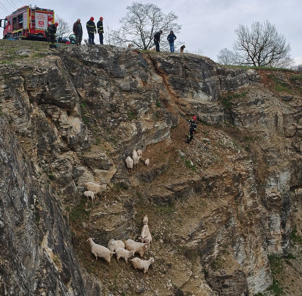 Kocaeli’nin İzmit ilçesinde, bir çobanın korku dolu anları, itfaiye ekiplerinin kahramanlık hikayesine dönüştü. Sarıhocalar köyü kırsalında yırtıcı hayvandan kaçarken dik kayalıklarda mahsur kalan 16 keçi ve oğlak, Kocaeli Büyükşehir Belediyesi İtfaiye ekiplerinin yaklaşık 3 saat süren nefes kesen operasyonuyla özgürlüğüne kavuştu.