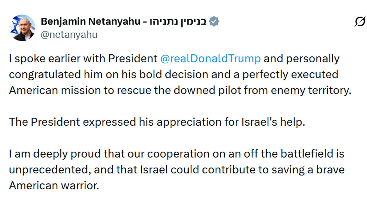 Trump ile telefonda görüştüğünü açıklayan Netanyahu, İran topraklarındaki Amerikan pilotun kurtarılması için Trump’ı şahsen tebrik ettiğini duyurdu.