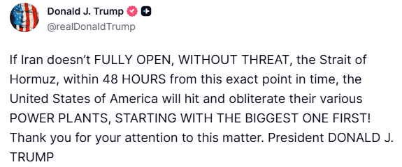 ABD Başkanı Donald Trump, İran’ın Hürmüz Boğazı’nı 48 saat içinde tamamen açmaması halinde, ülkenin enerji santrallerini hedef alacakları uyarısında bulundu.