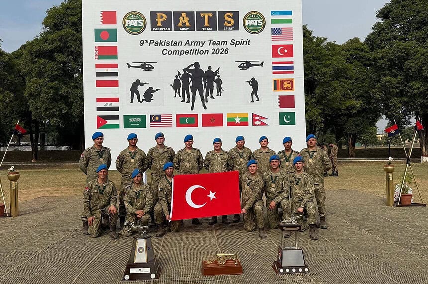 Pakistan’ın ev sahipliğinde gerçekleştirilen PATS-2026, dünyanın en prestijli askeri dayanıklılık ve takım ruhu yarışmalarından biri olarak kabul ediliyor. Fiziksel dayanıklılık, taktiksel beceri, hayatta kalma ve atış yeteneklerinin zorlu arazi şartlarında test edildiği organizasyonda, Türk Kara Kuvvetleri ekibi tüm etapları başarıyla tamamladı. 17 ülkenin en seçkin birliklerinin kıyasıya mücadele ettiği bu platformda takımımız, rakiplerini geride bırakarak birincilik kürsüsüne çıktı.