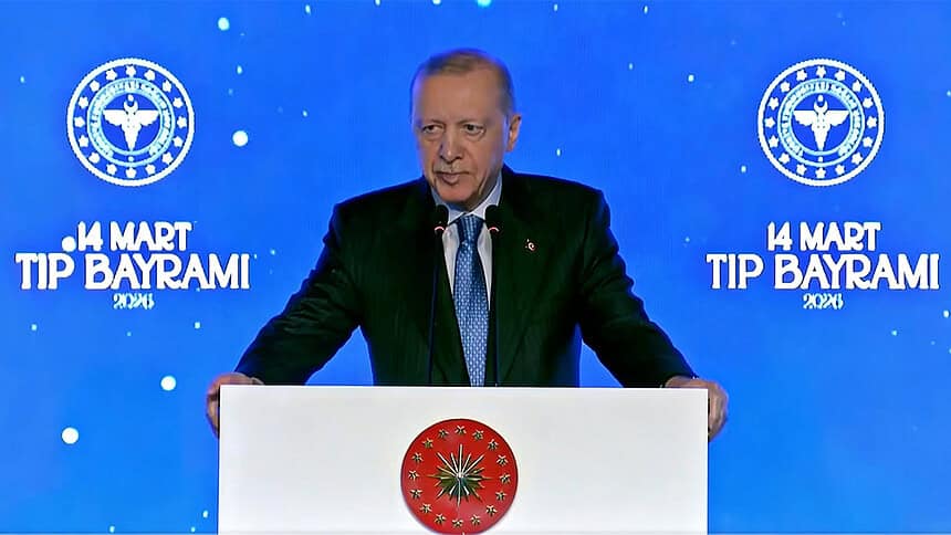 Cumhurbaşkanı Erdoğan, “14 Mart’ı bize Tıp Bayramı olarak veren doktorları ve talebeleri şükranla anıyorum” diyerek başladığı konuşmasında, hekim sayısındaki büyük artışa dikkat çekti. 2002 yılında 92 bin olan hekim sayısının 233 bine, ebe sayısının ise 113 binden 213 bine yükseltildiğini açıkladı.