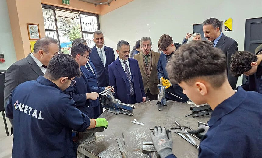 Eğitimi öncelikli gündemi olarak belirleyen Vali İlhami Aktaş, Gölcük’teki ziyaretlerine Şehit Volkan Tantürk Mesleki ve Teknik Anadolu Lisesi ile başladı. Okul Müdürü Metin Yalaz’dan teknik altyapı ve atölye çalışmaları hakkında bilgi alan Vali Aktaş, sınıflarda öğrencilerle bir araya gelerek başarı dileklerini iletti. Mesleki eğitimin bölge sanayisi için kritik önemine değinen Aktaş, öğrencilerin atölyelerdeki üretim süreçlerini yakından inceledi.