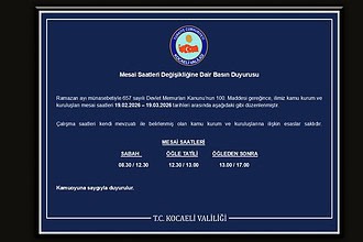 Kocaeli Valiliği’nden Ramazan Ayı Mesai Duyurusu
