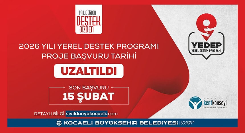 Kocaeli Büyükşehir Belediyesi ve Kent Konseyi işbirliğiyle yürütülen Yerel Destek Programı’na (YEDEP) başvurular, sivil toplum kuruluşlarından gelen talep doğrultusunda 15 Şubat’a kadar uzatıldı.